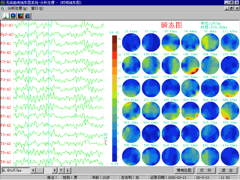 ·         癫痫波定位:用时域脑电地形图,帮助癫痫波定位